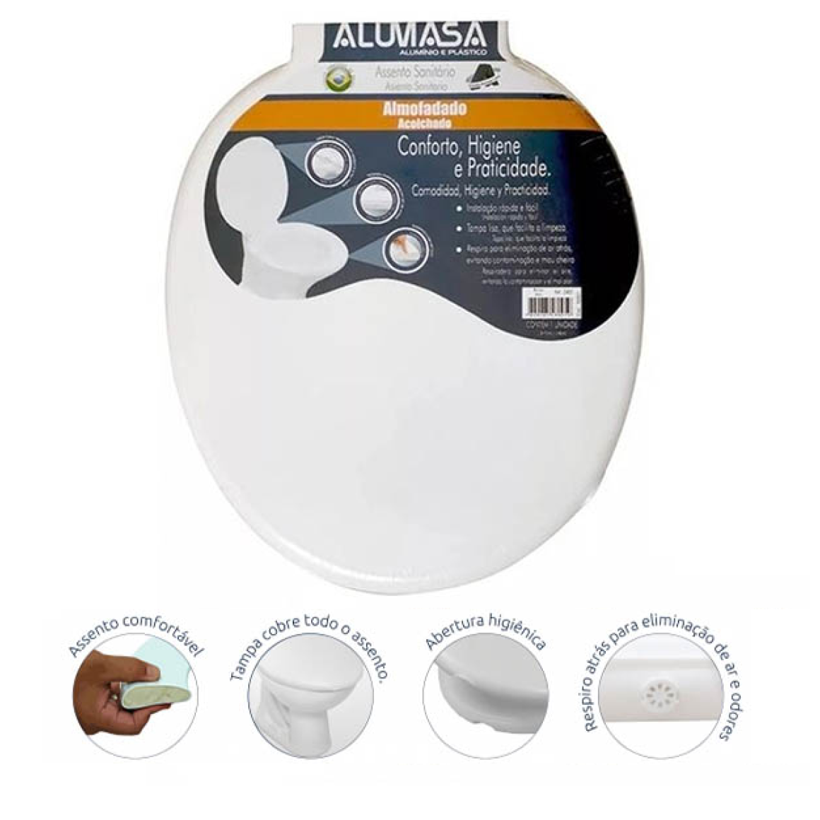 ASSENTO SANITARIO ALMOFADADO FLORENCA BRANCO ALUMASA 2482
